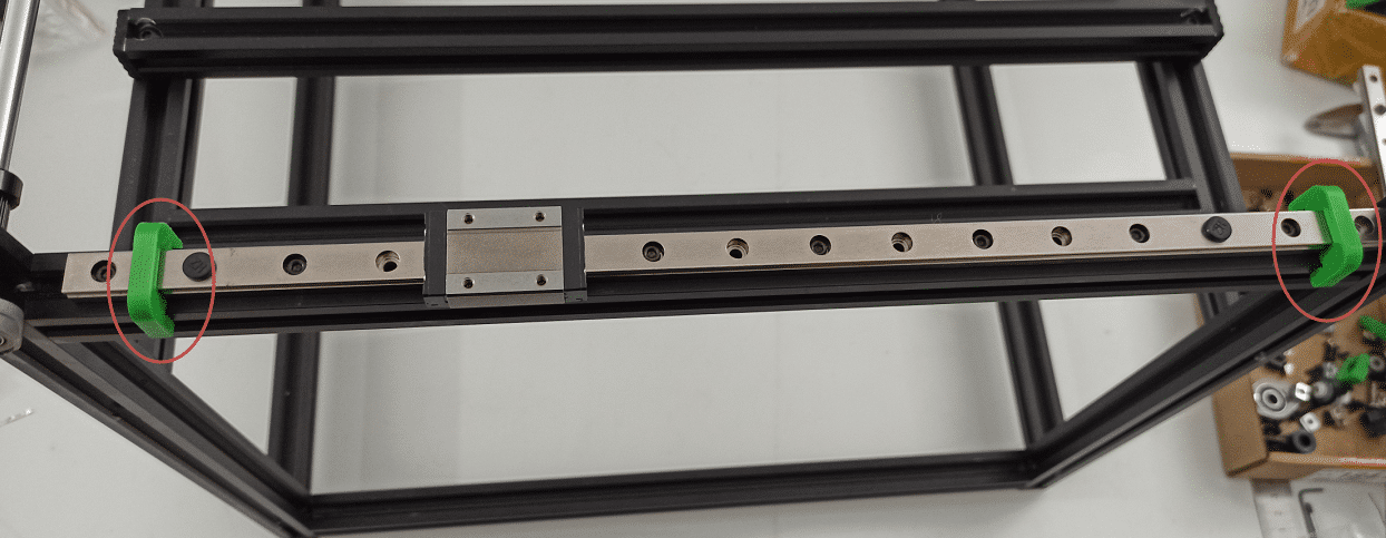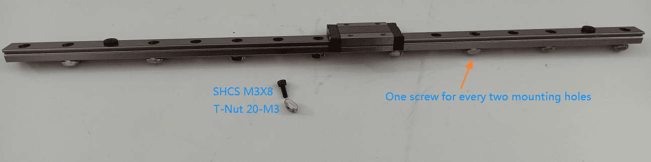 Use SHCS M3X8 screws and 20-M3 T-nuts to fix the linear rail to the top of frame.