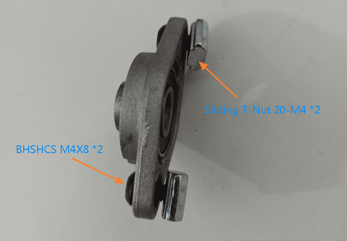 The Sliding T-Nuts are not required anymore for the KFL08 bearing. Retain only the screws for this step.