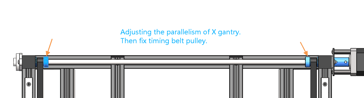 Adjust the parallelism of X gantry (may need to loosen some screws), then fix timing belt pulleys by tightning their respective screws.