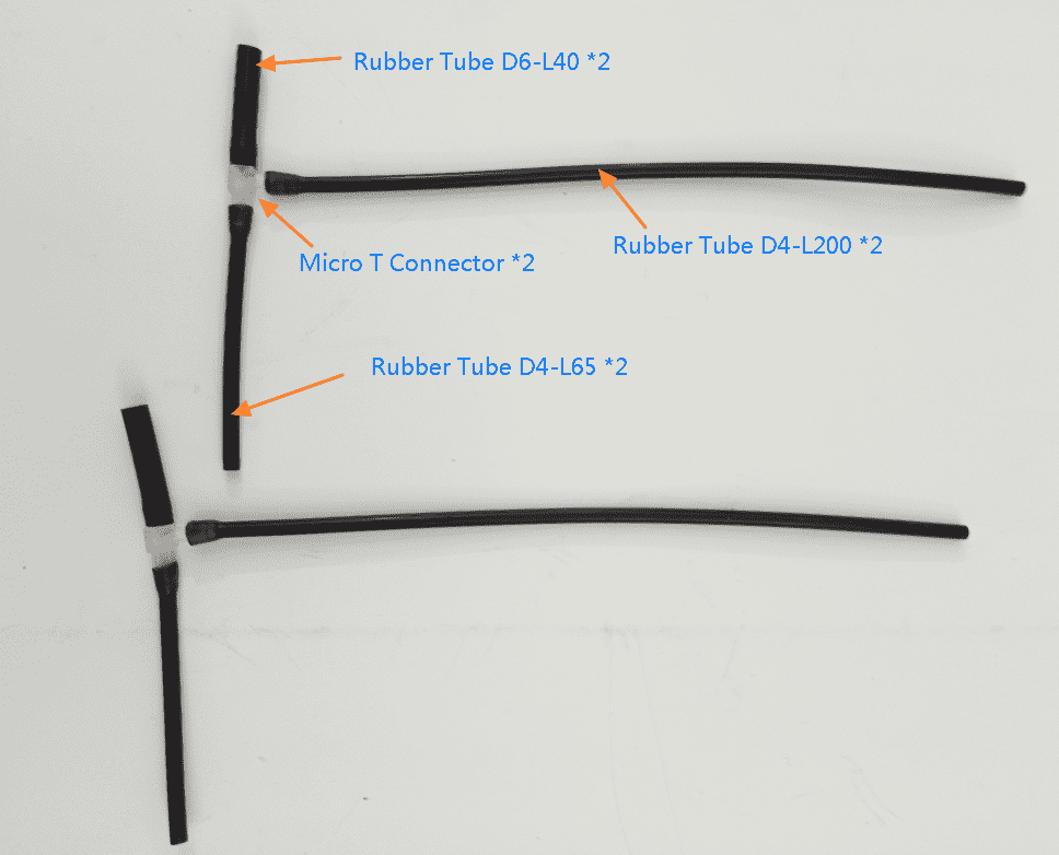 Use Rubber Tube D6-L40 to connect the two vacuum tubes to the top ports of the left and right solenoid valves respectively. The longer vacuum tube is connected to the left.