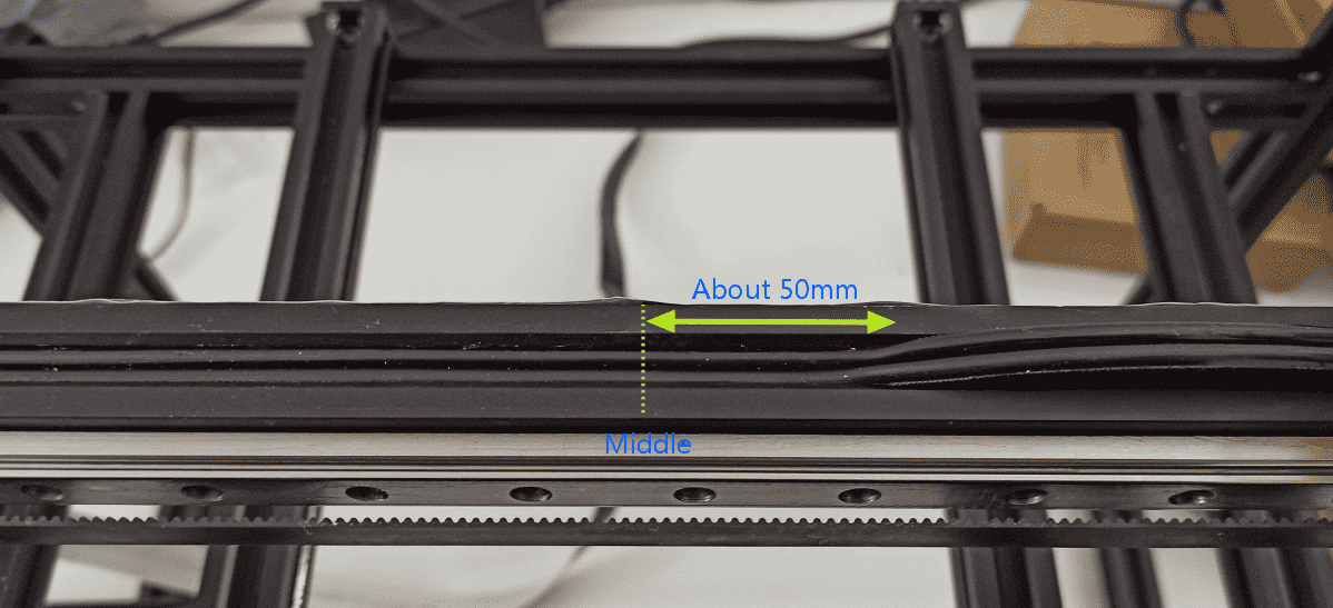 Cut 2 pieces of double-sided tape with a length of 200mm, paste them on the back side of the X-rail support profile. Remove the protective layer of double-sided tape and attach the FFC cable to the back side of the profile.