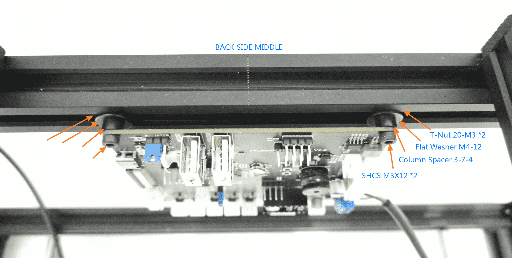 Use screws, spacers, washers and t-nuts to fix the board to the back side of body frame.