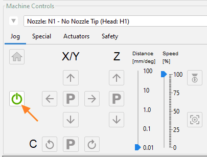 Click the Enable/Disable button on the Machine Controls panel to establish a connection.