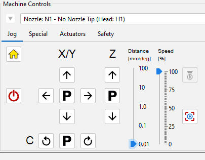 Switch to the Actuators tab on Machine Controls panel and test the machine's actuators.