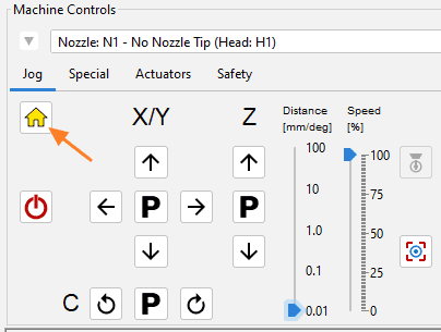 After the communication is successfully connected and before the machine is homed, the button status is as shown in the figure: