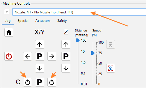 Use the counterclockwise and clockwise buttons to test the rotation of the nozzle motor.