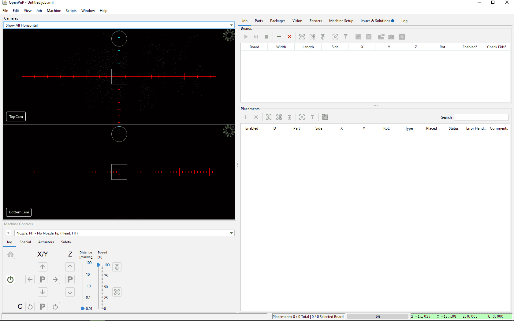 Start OpenPnP, the software interface will display successfully. You can briefly browse the original software settings.