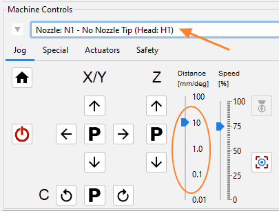 Select Nozzle:N1 from the Machine Controls panel.