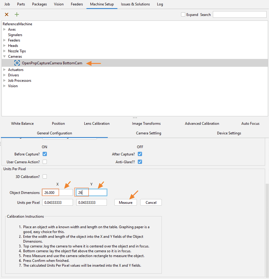 Set the Units Per Pixel in the General Configuration page of BottomCam as follows.