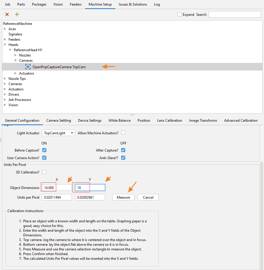 Use the bottom side of the 2nd_Calib board PCB to set the Units Per Pixel value of Top camera and Bottom camera.