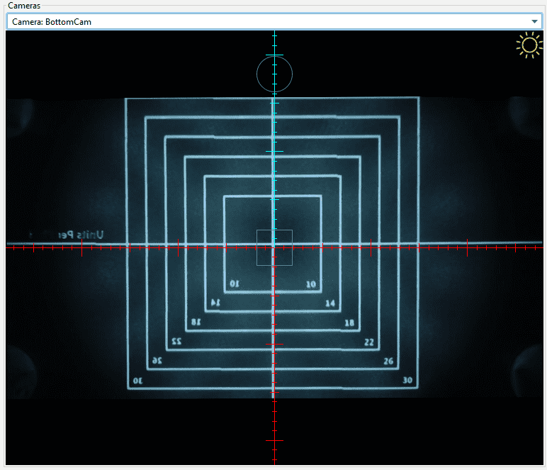 Place the 2nd_Calib board directly above the Bottom Camera, manually adjust the position and orientation so that the crosshairs of the BottomCam view are roughly aligned with the crosshairs of the 2nd_Calib board.