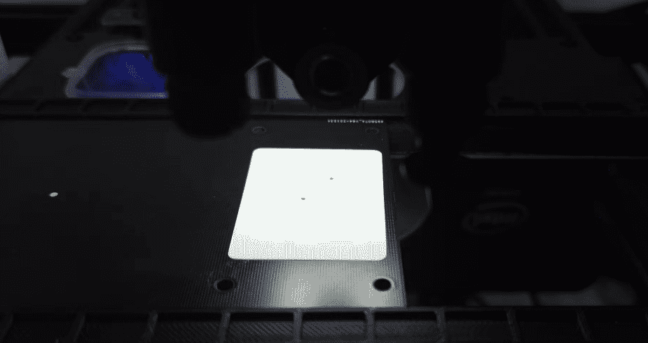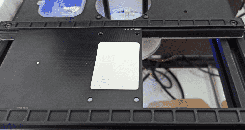 Put a blank sticker (about 40x30mm) on the surface of the 1st_Calib board. It is recommended to palce it in the position as shown in the picture, so that it will not affect the subsequent steps.
