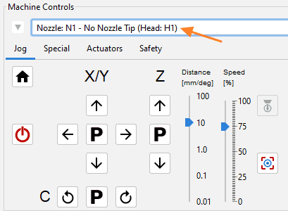 In the Offset Wizard tab of N1 settings , click on the Store nozzle mark position button and the nozzle tip position will be updated in the X Y values.