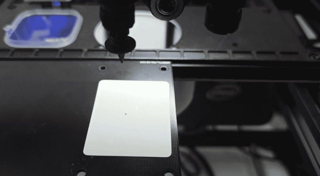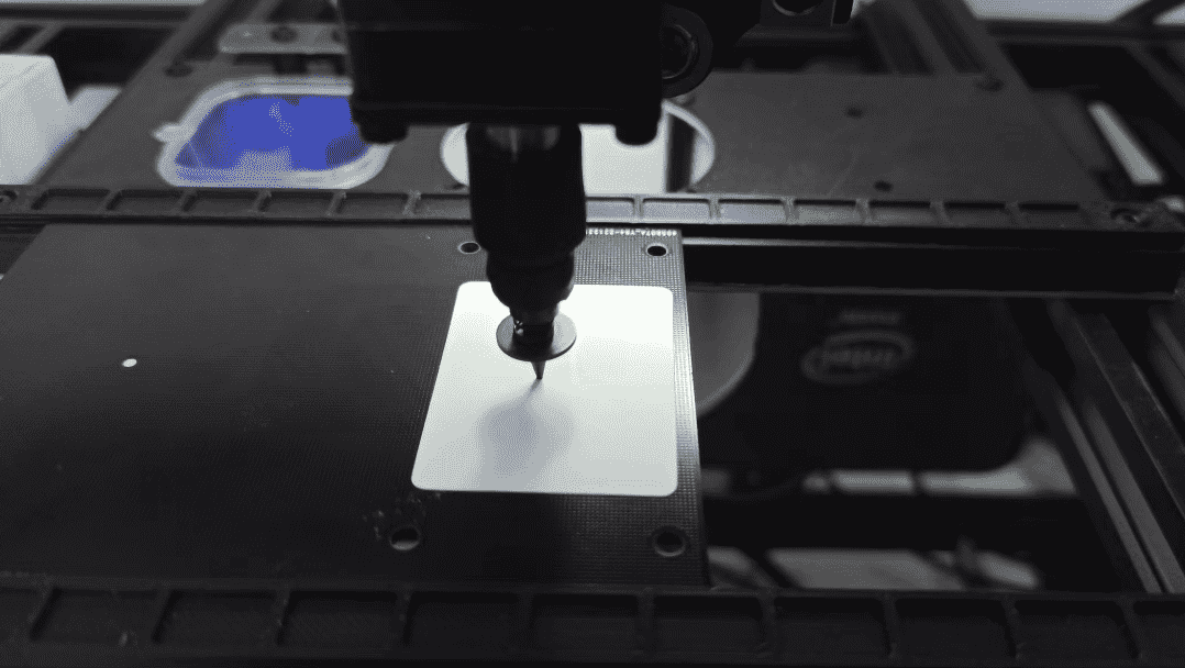Click the rotating P button and the Z-axis P button on the Jog panel to return the N2 nozzle to its previous state. There will be a mark left by the nozzle on the surface of the sticker.